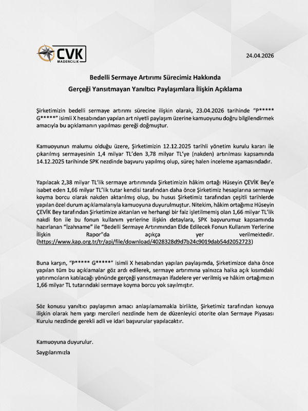 CVK Madencilik, 100% yerli sermaye ile kurulmuş olan işletmeleri ile maden faaliyetlerini sürdürmektedir.